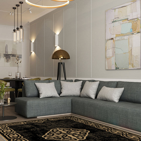 Mysterious, moody, and steeped in symbolism—the Sorin Black Celtic Rug is a striking tribute to Celtic artistry. With its richly knotted borders and centre medallion, this design evokes strength and connection. The deep black backdrop, gently distressed, enhances its timeless presence while blending beautifully with modern gothic or heritage interiors.