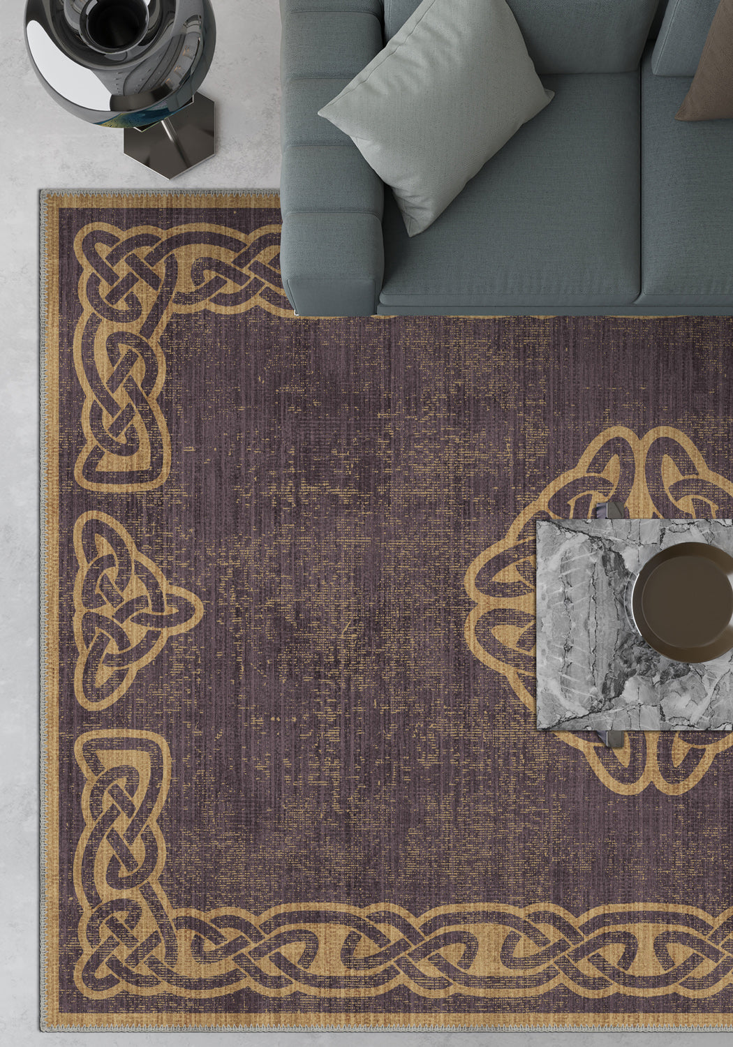 Step into a realm where history whispers beneath your feet. The Sorin Celtic Lavender Rug evokes the magic of ancient traditions with its intricate knotwork design—woven in warm golden ochre over a dusky, regal lavender base. This is more than a rug; it’s a portal to another time, a centrepiece of story and soul.