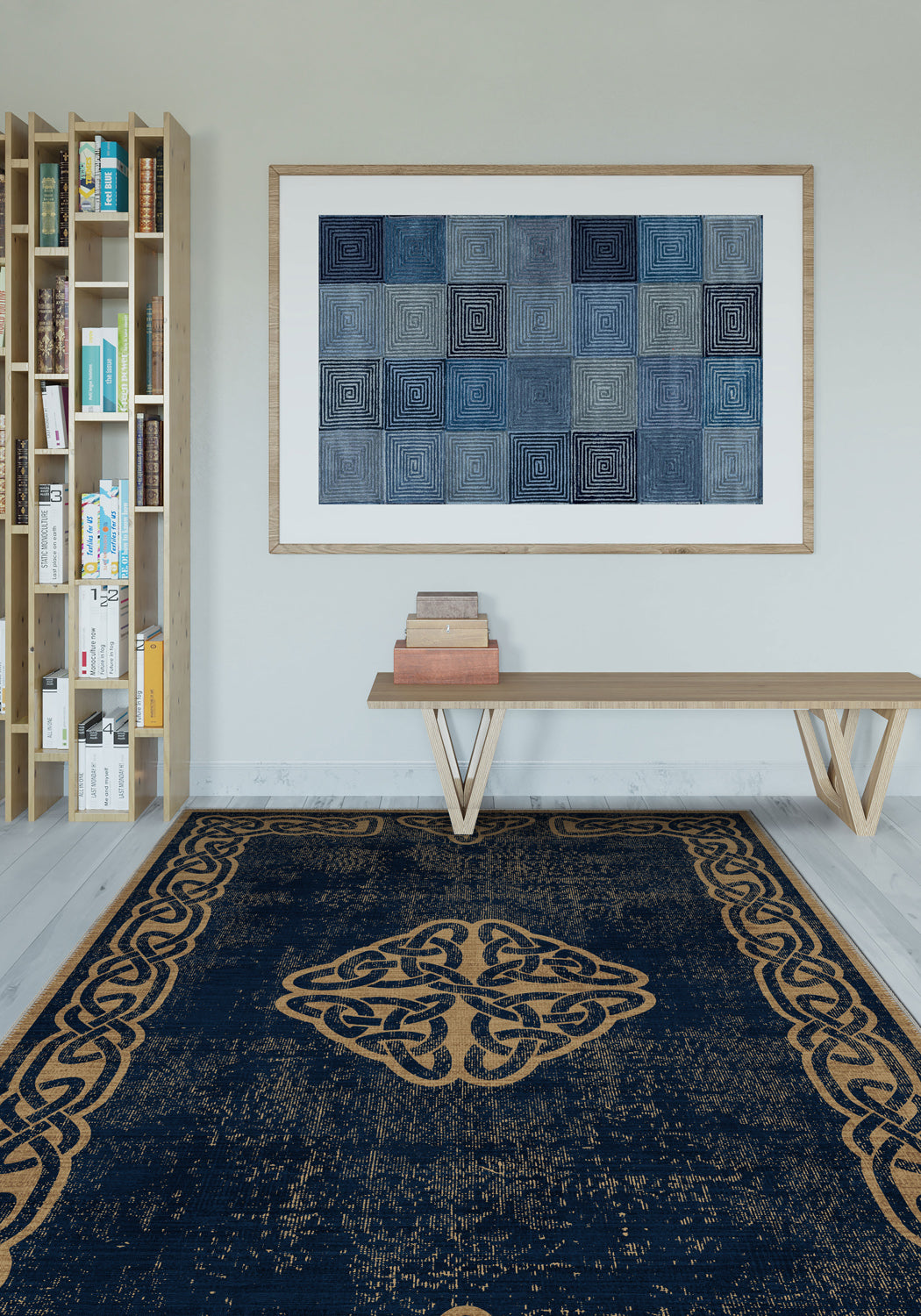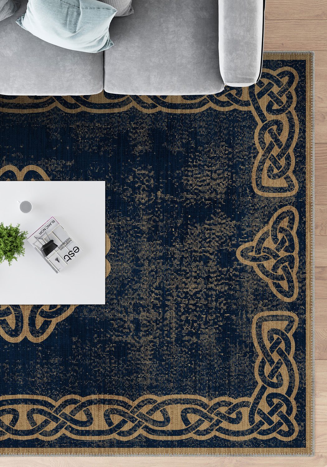 Because dark tones don’t just anchor—they enchant. This washable Celtic rug merges symbolic design with practicality, for homes that honour both past and present.