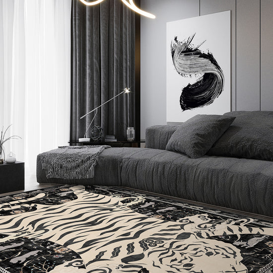 Tashi Black and White Tiger Pelt Rug โ Mystical Power Meets Vintage Prestige