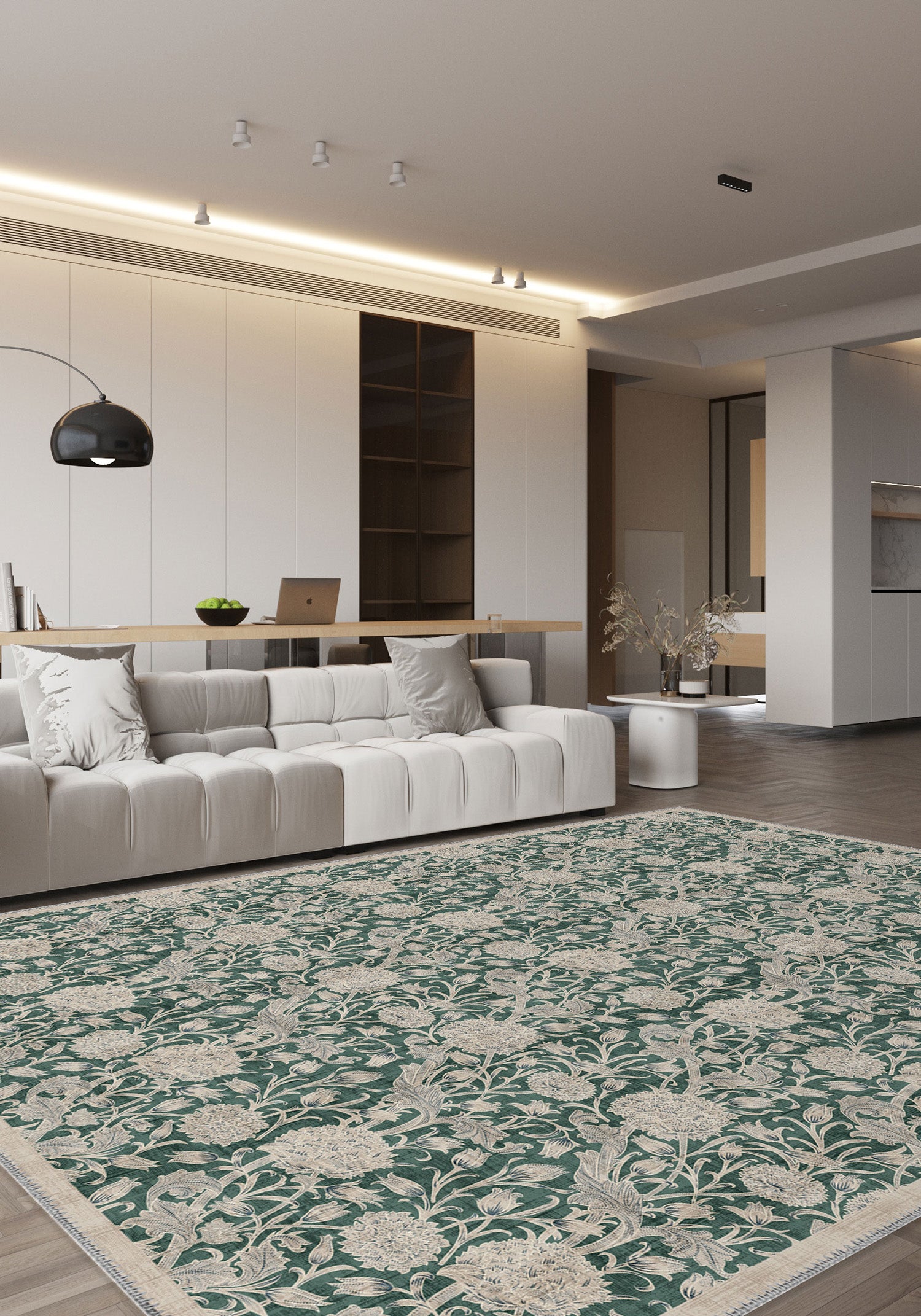 Rugette rugs feature a dust-free design and low pile, providing a sleek, easy-to-clean surface for a modern home.